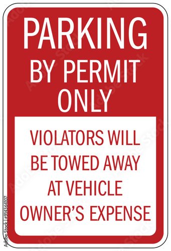 Fototapeta premium Parking permit signs Violators will be towed away at vehicle owner's expense