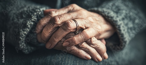 © cui, Fototapeta premium Parkinson disease patient, Alzheimer elderly senior, Arthritis person's hand in support of nursing family caregiver care for disability awareness day, National care givers month, aging society concept