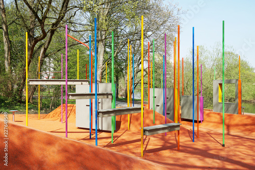 Fototapeta premium parkour obstacle course public outdoor training ground in Hannover, Germany