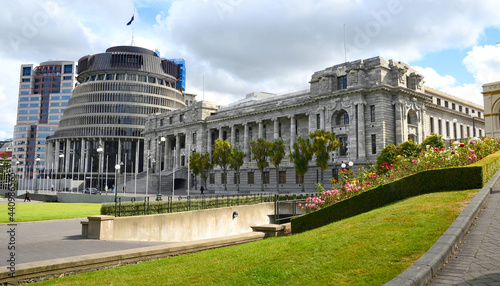 © Nina, Naklejka premium Parlamentsgebäude in Wellington, Nordinsel Neuseeland, Down Under, Hauptstadt Neuseelands