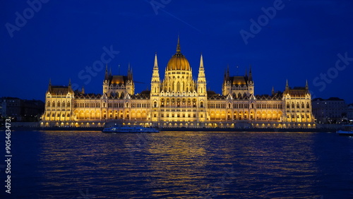 Obraz premium Parliament at night from the river Budapest