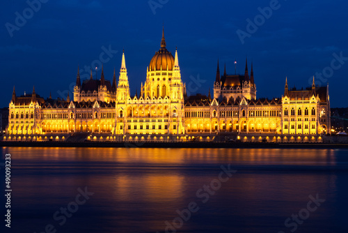 © meraleguz, Fototapeta premium parliament building in budapest at blue hour in the evening