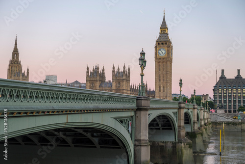 Naklejka premium Parliament London and Westminster Bridge at dawn