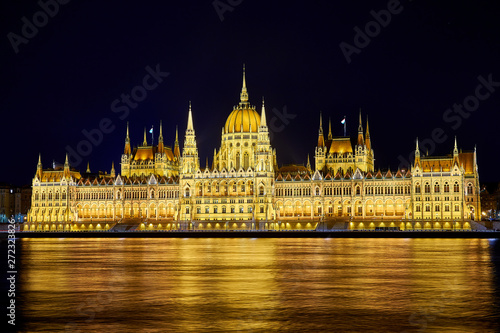 © marco, Fototapeta premium parliament of budapest on the river by nigh