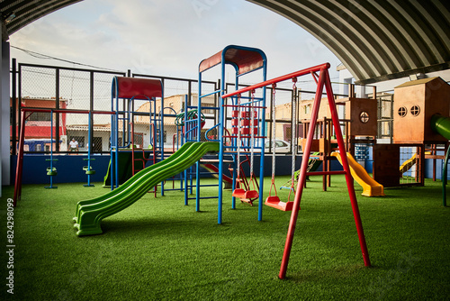 © Grecia Yarlequé, Fototapeta premium Parque con juegos para niños de colores