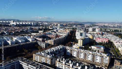 © Comprimido, Fototapeta premium parque das nações torre arranha ceus rio tejo