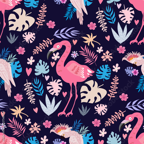 © mistletoe, Obraz premium Parrot and flamingo pattern 1