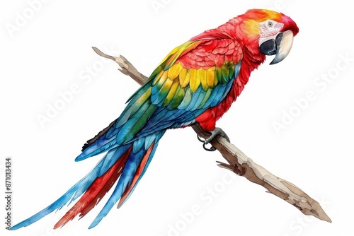 © wasan, Fototapeta premium Parrot, bird, Pastel-colored, in hand-drawn style, watercolor, isolated on white background
