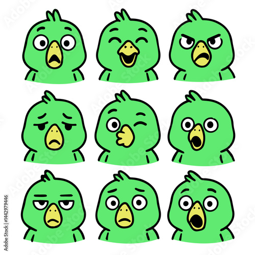 © Roman, Fototapeta premium parrot emotions icons set cartoon vector vector set collection cartoon animals illustrations on white background cartoon collection parrot collection of 9 cartoon animals