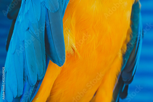 © 3rus, Obraz premium Parrot feathers yellow and blue exotic texture