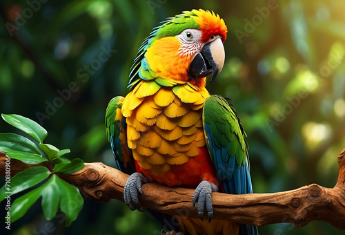 Fototapeta premium "Parrot on a Branch Wallpaper and Background" AI-Generated.