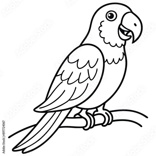 © fuad, Fototapeta premium Parrot perched on branch with a smile
