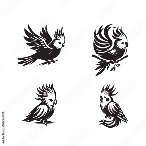 © Kinza, Obraz premium "Parrot Silhouette" "Silhouette of a Parrot Bird" "Parrot Silhouette Vector"
