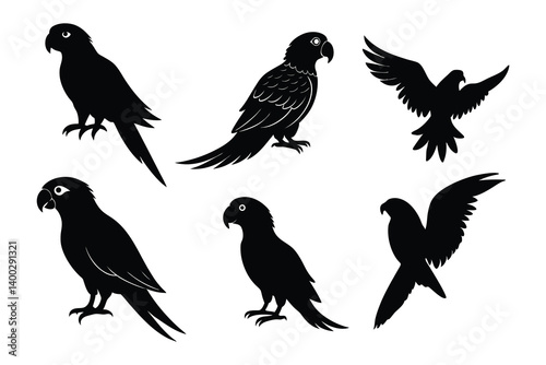 © Fayej, Obraz premium parrot silhouettes collection on a white background.