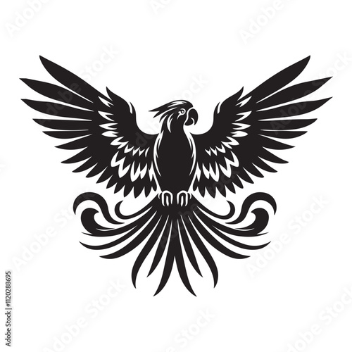 © Mizanur Rahman, Obraz premium Parrot with spread wings silhouette vector art black color design and solid white background