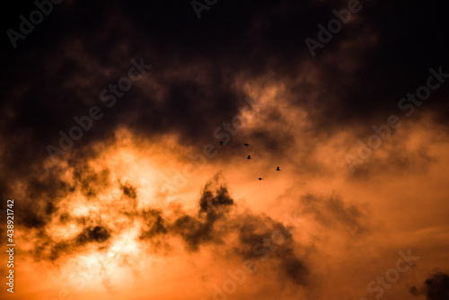 © 121244, Naklejka premium Parrots in flight under heavy clouds