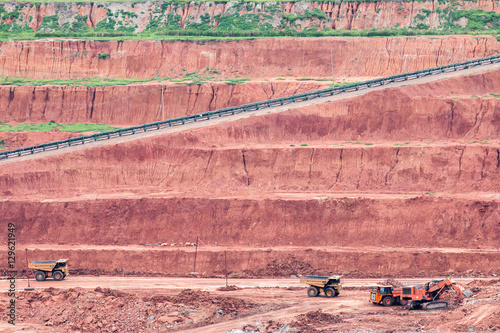 © freedom_naruk, Obraz premium Part of a pit with big mining truck working