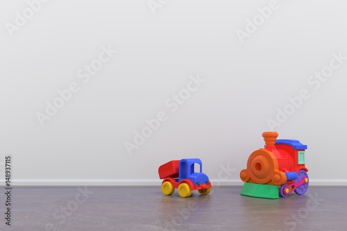 © Vanitjan, Obraz premium Part of interior with toy car ,3D rendering