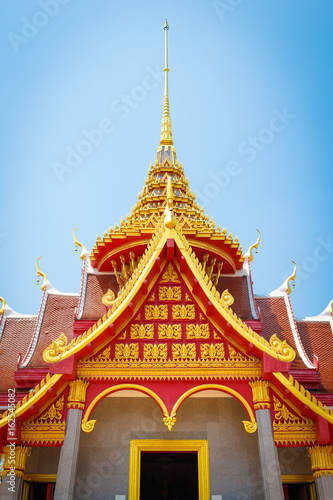 Fototapeta premium Part of Thai temple roof with blue sky background