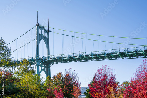 © vit, Naklejka premium Part of the arched St Johns bridge in Portland in the colors of autumn trees