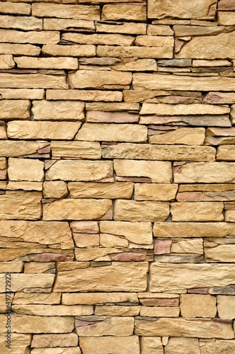 © vp3k, Obraz premium Part of the beige stone wall. Brown rock wall background texture.