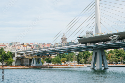 Obraz premium Part of the bridge in Istanbul connecting the Asian part with the European part of the city. The architecture of Istanbul is on the background