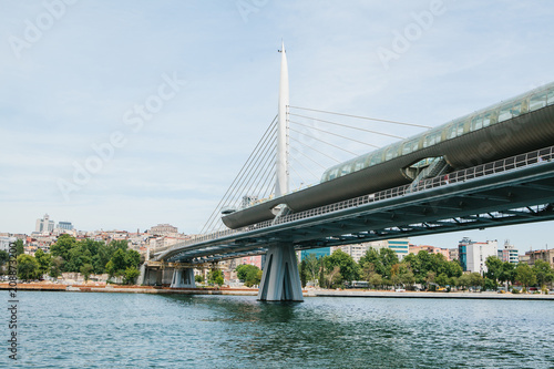 Fototapeta premium Part of the bridge in Istanbul connecting the Asian part with the European part of the city. The architecture of Istanbul is on the background