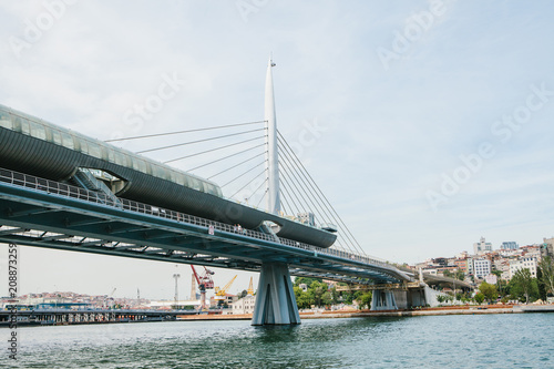 Fototapeta premium Part of the bridge in Istanbul connecting the Asian part with the European part of the city. The architecture of Istanbul is on the background