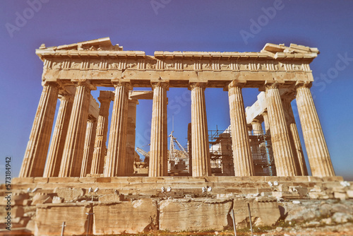 © Dimitrios, Fototapeta premium Parthenon under clear blue sky, the famous ancient Greek temple on the acropolis of Athens. Cultural travel Greece.