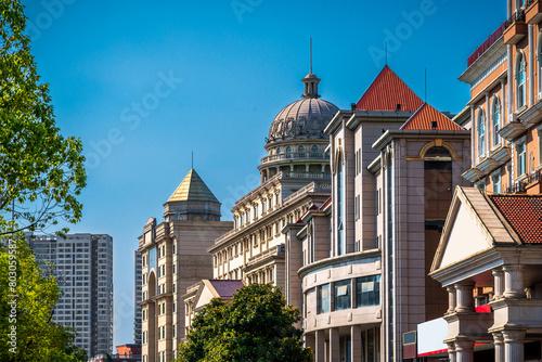 © evening_tao, Fototapeta premium Partial close-up of modern urban buildings