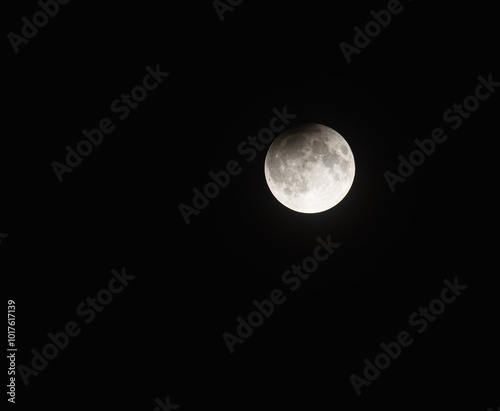 © Cavan, Fototapeta premium Partial lunar eclipse of full moon against black night sky.