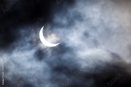 © Juhku, Fototapeta premium Partial solar eclipse through clouds