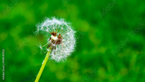 Fototapeta premium Partially bald dandelion on a green background