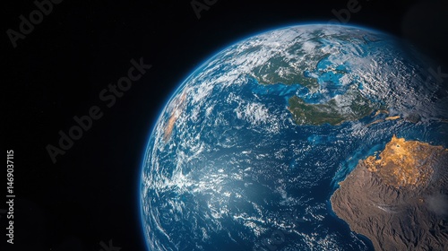 Fototapeta premium Partially-shown earth from space with ocean, landmasses, and cloud cover against black space background