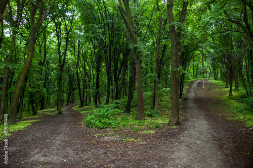 © rootstocks, Obraz premium Parting of the ways in a green summer forest