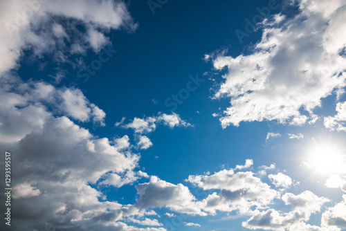Naklejka premium Partly cloudy sky background photo. Weather forecast concept.