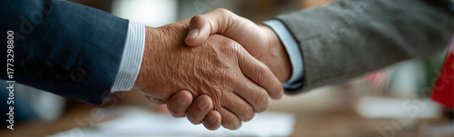Fototapeta premium Partnership Handshake: A close-up shot of two people shaking hands, embodying...
