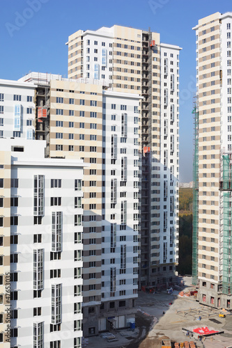 © Pavel Losevsky, Naklejka premium Parts of high-rise buildings under construction at sunny day.