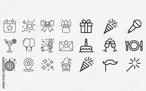 © Armankhan, Naklejka premium Party and celebration icons line art vector