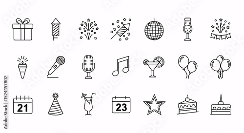 Naklejka premium Party and entertainment outline icons – 21 festive vector symbols