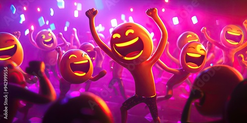 © jambulart, Fototapeta premium Partying emoji figures in neon light.