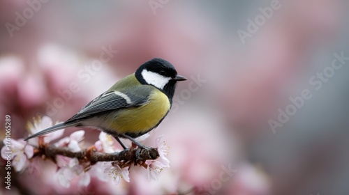 © Firadoaw, Naklejka premium Parus caeruleus, spring flowers, delicate branch