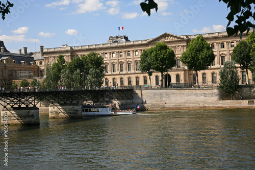 © Spiroview Inc., Naklejka premium Paryż, Luwr i Most Akademii z drugiej strony Sekwany