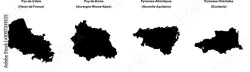 Obraz premium Pas-de-Calais, Puy-de-Dome, Pyrenees-Atlantiques, Pyrenees-Orientales outline maps