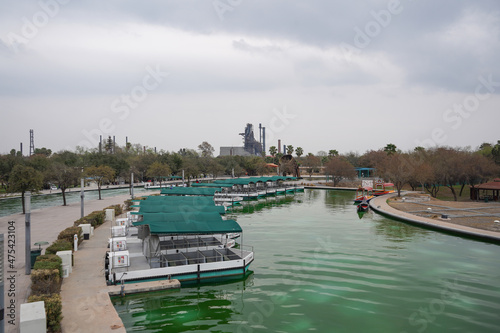 © Victor, Fototapeta premium Paseo con rio artificial en Monterrey