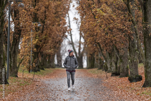 Fototapeta premium Paseos urbanos bajo arboles en otoño