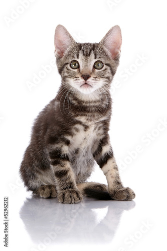 © Azaliya (Elya Vatel), Obraz premium Pasiasta Mała figlarka siedzi na białym tle.