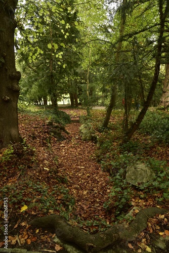 © Photocolorsteph, Naklejka premium Passage étroit en plein bois en automne au Jardin Botanique National de Belgique à Meise