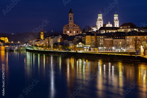 Obraz premium Passau am Donauufer zur blauen Stunde