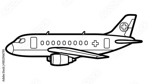 © Firman, Obraz premium Passenger Airplane Coloring Page with Simple Aircraft Outline for Kids